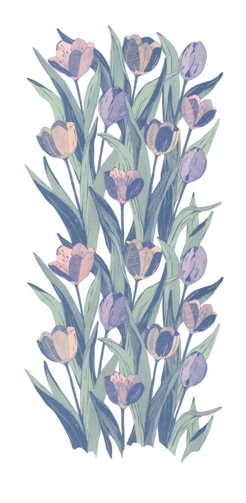 SPRING TULIPS Screen print Spring Tulips Title: spring Tulips Medium: Screen print, Edition size 30 Paper size (cm): 100 x 49 Image size (cm): 88 x 40